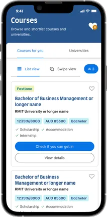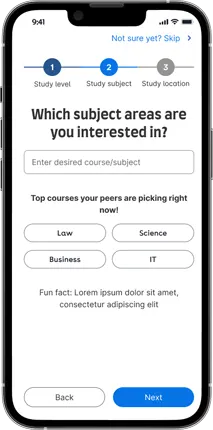 UniWays Global Live app tailors the most relevant advice and recommendations for your study needs and goals. Keep your personal details up to date, so we can show you the best international courses or universities for you.